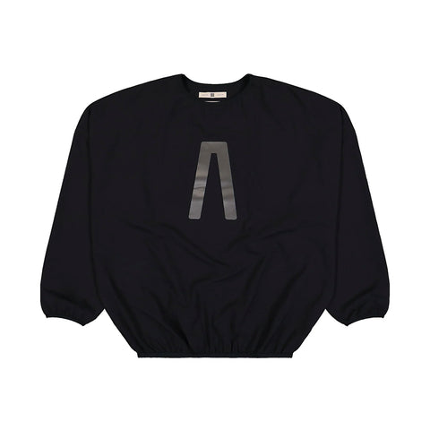 La sudadera de cuello redondo Fear of God Athletics Meltaway se distingue por su tejido elástico de doble capa con textura antidesgarro. La prenda presenta un diseño voluminoso en el cuerpo y las mangas. Entre sus detalles funcionales se incluyen un cuello redondo y un dobladillo de cintura sellados, con puños con ribete elástico. La marca se simboliza con un logotipo "A" metálico en relieve en la parte central delantera y una etiqueta negra de adidas sellada en la parte trasera del cuello.