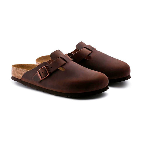 Boston SFB LEOI Habana, Un clásico modelo Birkenstock cerrado de piel basado en el clásico zueco (clog). Extraordinario calzado que ofrece confort y descanso. Ajustable en su parte superior para mayor comodidad. En esta versión se han incorporado plantillas suaves "Soft Footbed"