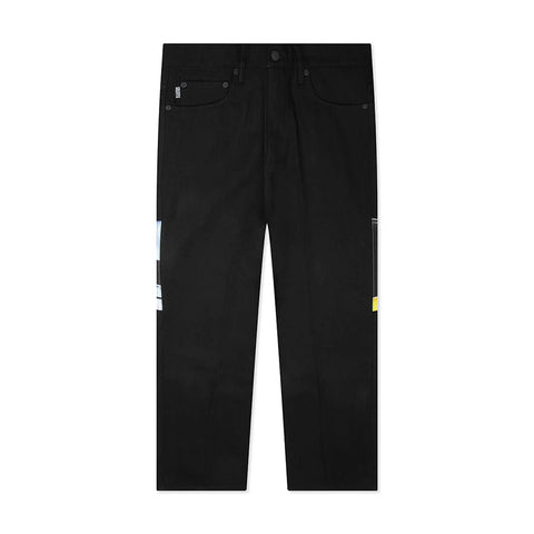 RAM BAGGY JEANS, Pleasures rinde homenaje al legado de Daft Punk con su última colaboración: los Ram Baggy Jeans. Confeccionados en algodón de primera calidad, su silueta holgada presenta un diseño tradicional de cinco bolsillos y bragueta de botones. El diseño serigrafiado de un casco en el lateral de las piernas le da un toque característico. El logo de Daft Punk bordado y el jacrón de cuero de Pleasures en la parte trasera le dan un toque distintivo.