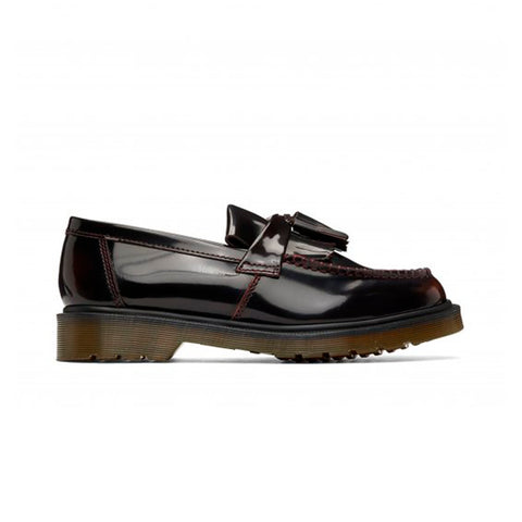 Adrian Cherry Red Arcadia, Fabricados en la fábrica original de Dr. Martens en Cobbs Lane, los mocasines Adrian con borlas llegaron a las calles en 1980. Con su doble borla y flecos, este clásico mocasín unisex sin cordones se ha mantenido vigente desde el primer día. Ahora, se presenta en una elegante piel bicolor: Arcadia.